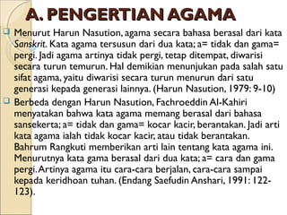 Ddalam ajaran kristian istilah confession pengakuan dosa digunakan oleh penganutnya sebagai salah satu konsep penyelamatan dari dosa yang dilakukan oleh manusia. Nabi kitab suci umat dan suatu sistem hukum bagi penganutnya15 Kriteria ini yang membuat pengenut kepercayaan terlempar dari makna agama. Selalunya agama memberikan ganjaran dan hukuman.